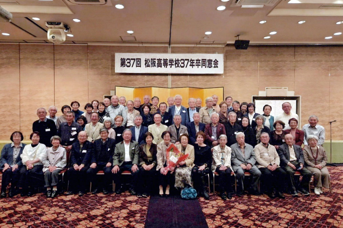 令和7年4月6日 第37回 松阪高等学校37年卒同窓会を松阪フレックスホテルにて開催致しました。今回は米寿を迎えられました恩師阪村幸代先生にもご例席を頂き(阪村先生には同窓会開催当初よりご出席をして頂いております)出席者65名にて盛大に開催することが出来ました。